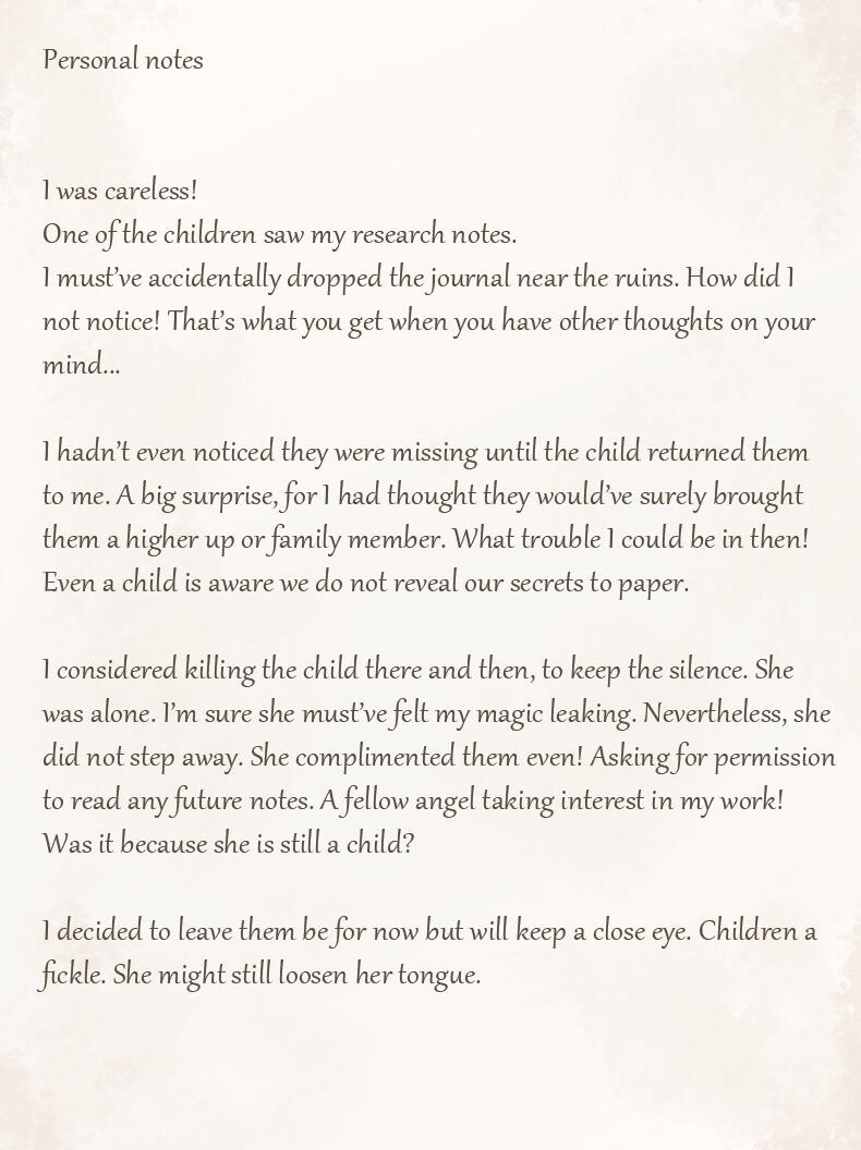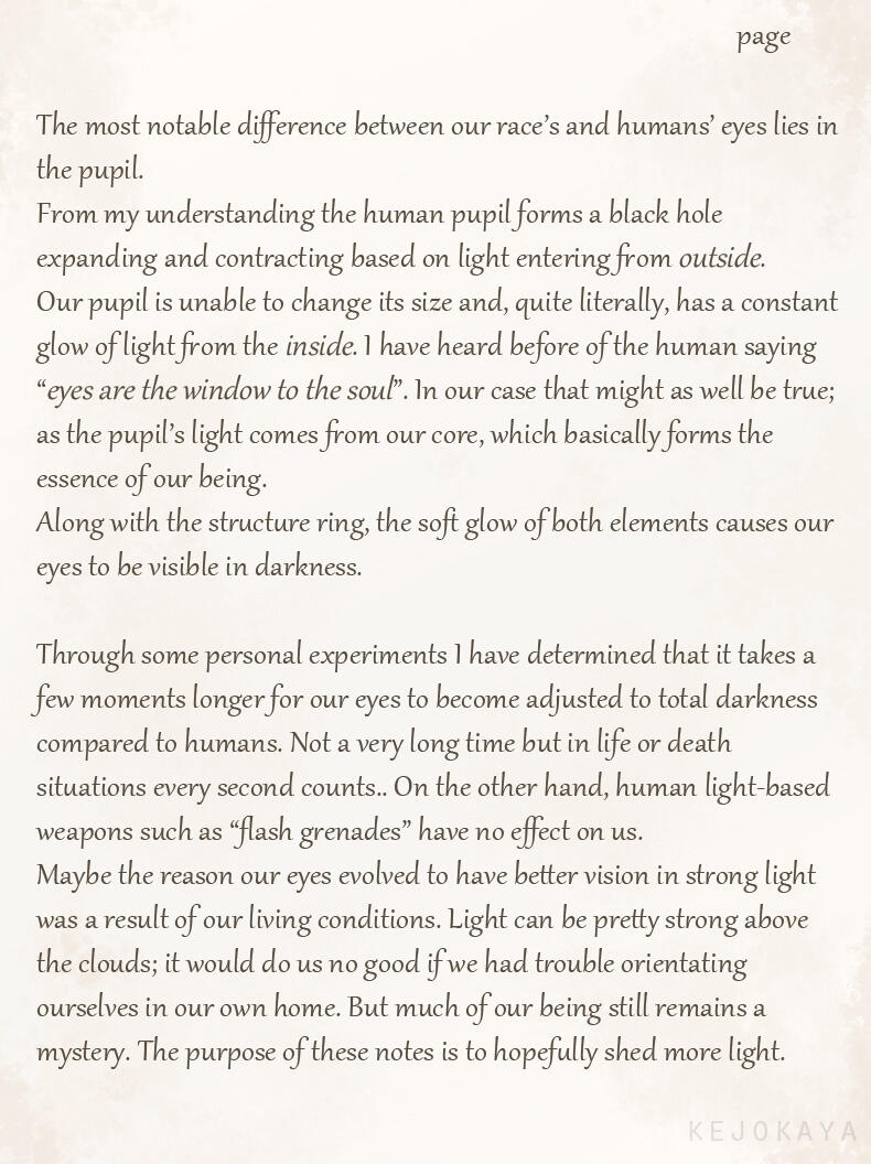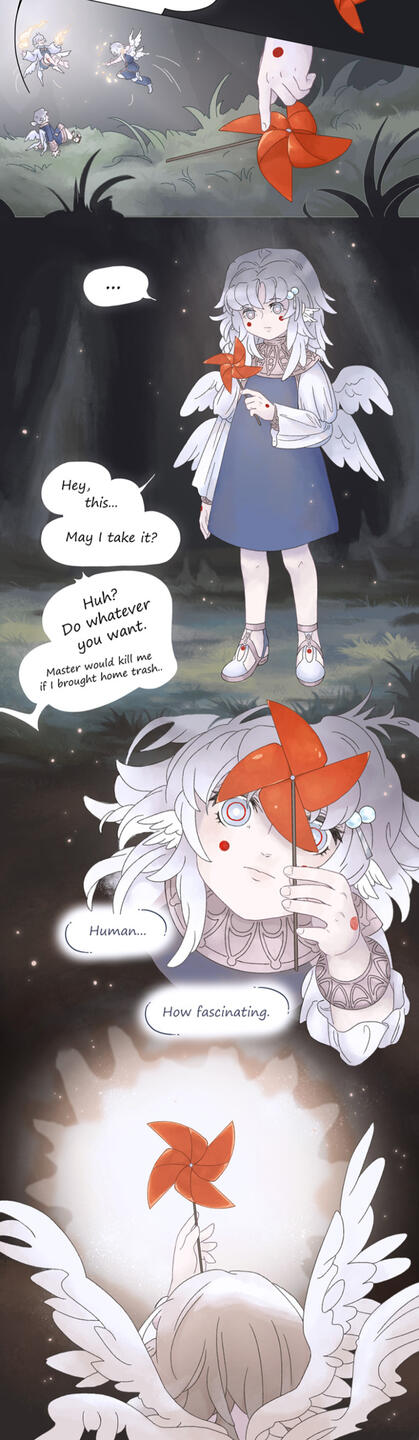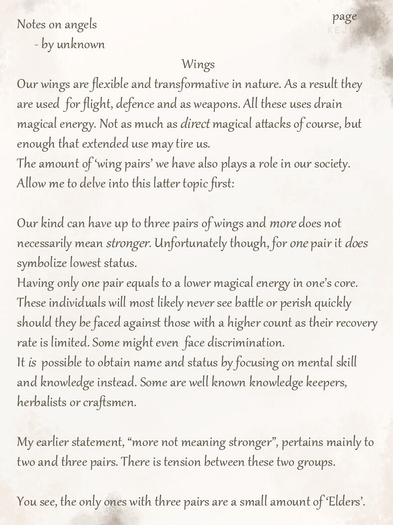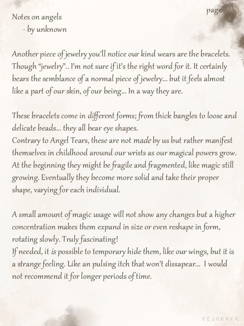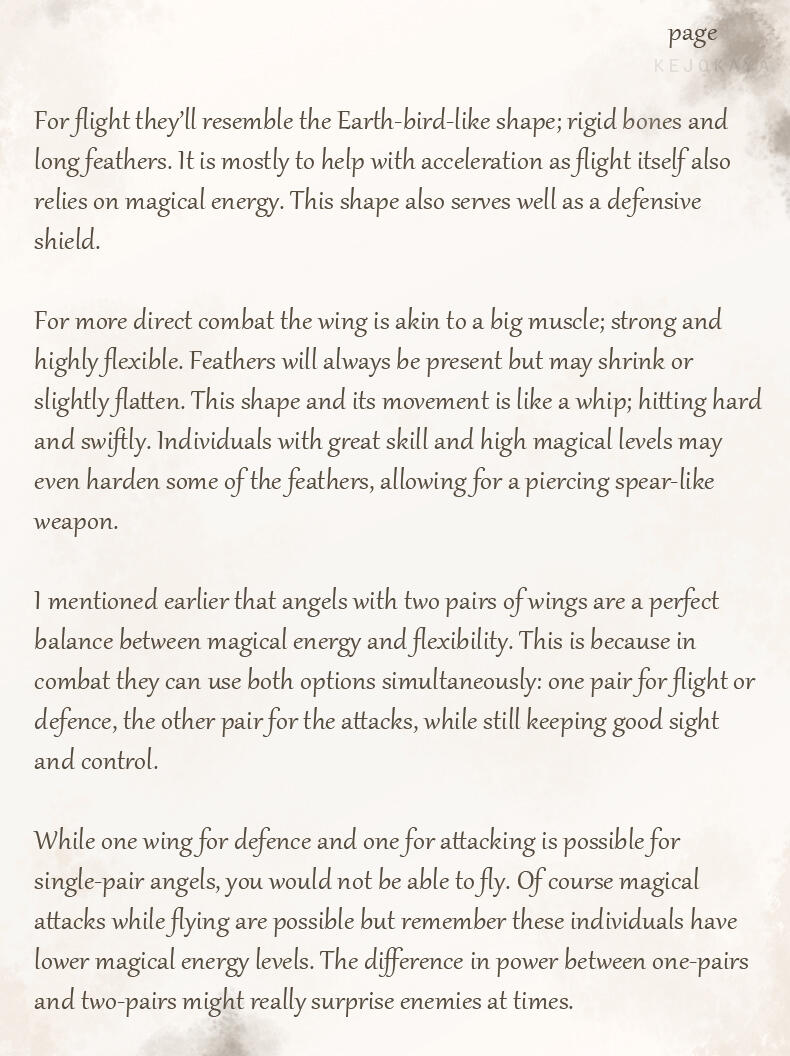 For lack of creativity or perhaps a feeling of superiority her race adapted these names as their own.While she's unsure whether or not her race is what humans originally saw as angels in the distant past, or if they are merely a mimicry of these angelic beings, she feels many humans have a much too gentle and pretty view of her people.