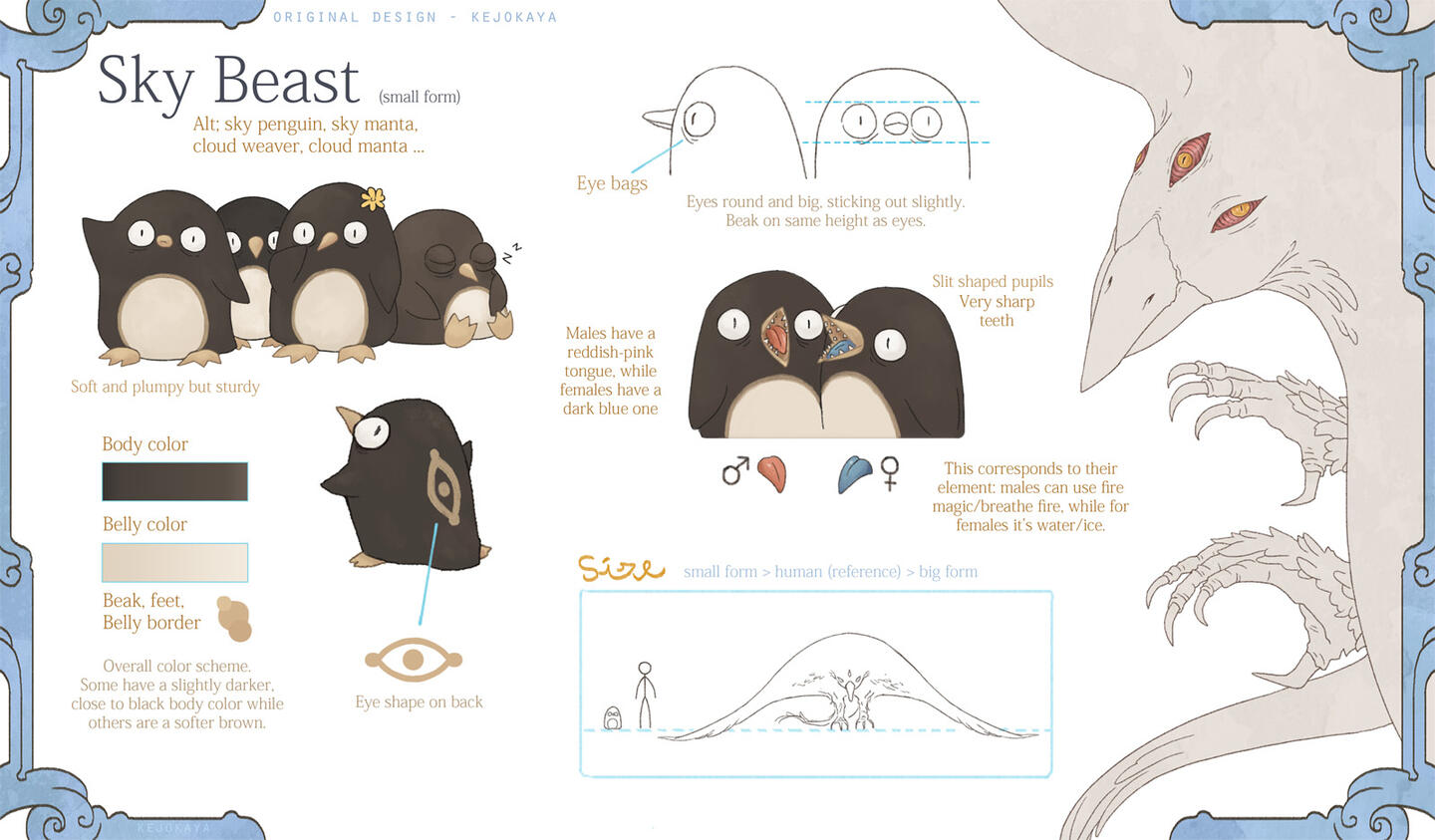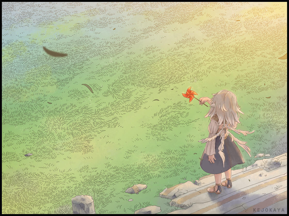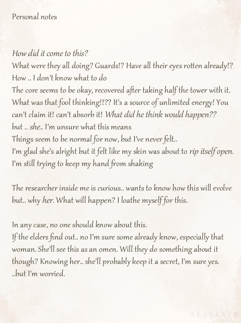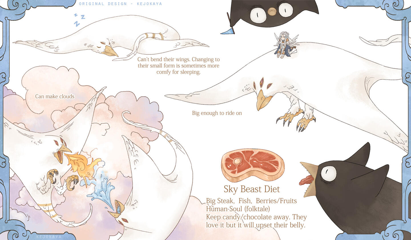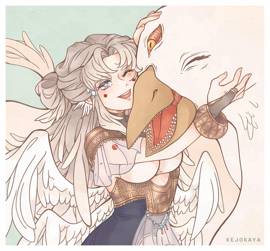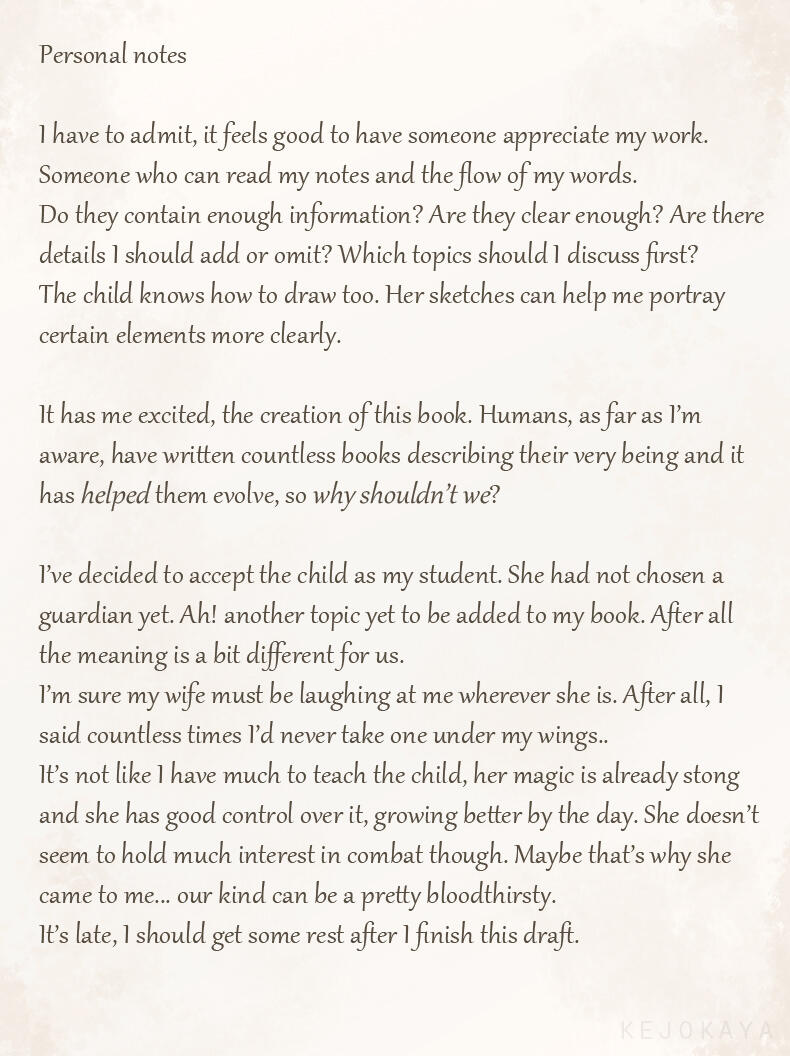To her, the place is filled with haughty individuals, thinking of themselves as superior beings or even Gods. A race who sees combat, especially with some spilled blood, as the ultimate entertainment.-For reasons unknown she chose to leave the place and live on Earth instead. Perhaps due to her big fascination for human growth and their creations, though she prefers to observe from a distance.Majority of her time is therefore spent inside her subspace domain. The only way to access this place is by coming into contact with a small translucent orb, etched high onto an old tree in the woods. As this seperate space does not have a true sky she sometimes enjoys leaving it to watch the sunset from among the trees.While she's a bit slow with human technology, after some fumbling she's figured out how to live broadcast her artwork to the world and perform the art of "streaming".-She is a pacifist and prefers to avoid confrontations and violence (though sometimes the habits of her race might not be as fully absent as she wishes...). As a result she doesn't show much of her powers unless absolutely neccessary. At times she might joke about having another, much stronger form but does not delve into the topic further.She lives together with her loyal pet Sky Beast named Fern.-Trivia• Birthday: September 9